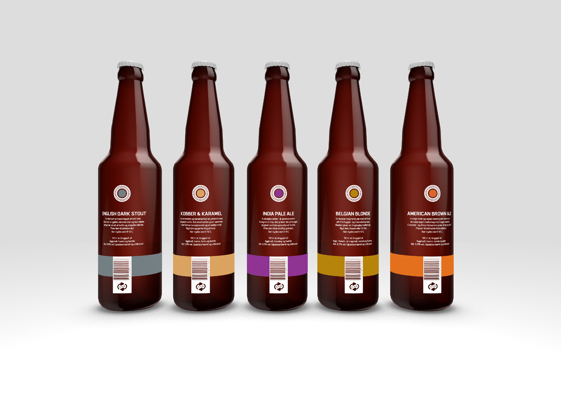 360° Operational Logic: We developed an "Omnidirectional Navigation" system. A bold, horisontal band and a central "Core Dot" act as the primary differentiators. Because the dot is mirrored on the bottle cap, the brew is instantly identifiable from any angle; whether standing in a rack, lying in a display, or viewed top-down in a service cooler.